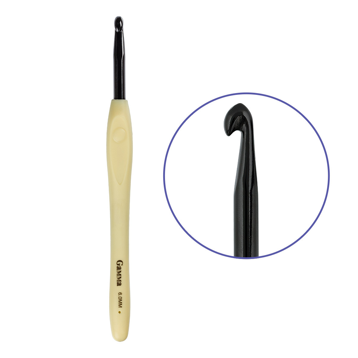 Для вязания " Gamma" RH- BL крючок с прорезин. ручкой алюминий d 6. 0 мм 16 см в блистере .