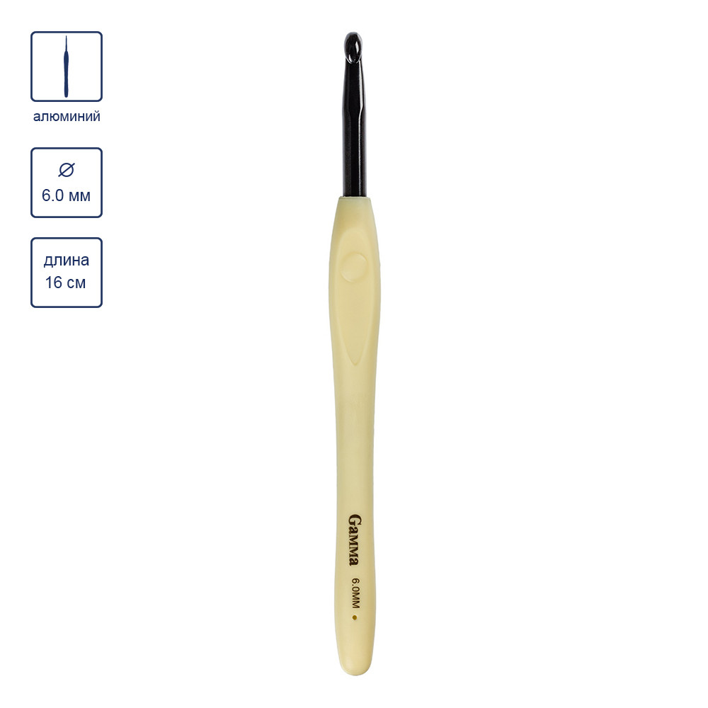 Алюминиевый крючок для вязания " Gamma" RH- BL с прорезиненной ручкой и черным анодированным покрытием идеальное решение для тех, кто любит вязать изделий из белой или светлых оттенков пряжи. Благодаря контрастному цвету головки петля хорошо видна на крючке и быстро привязывается. Гладкая головка крючка гарантирует пряже быстрое и легкое скольжение по его поверхности. Крючок легкий и эргономичный. Он удобно располагается в руке и обеспечивает максимальный комфорт при вязании. Мягкая ручка из эластичного прорезиненного материала не выскальзывает из рук, не давит и не образует мозолей на пальцах. Диаметр - 6. 0 мм. Длина крючка - 16 см. Длина головки - 4. 1 см. Длина ручки - 11. 9 см. Сообщить о неточности в описании