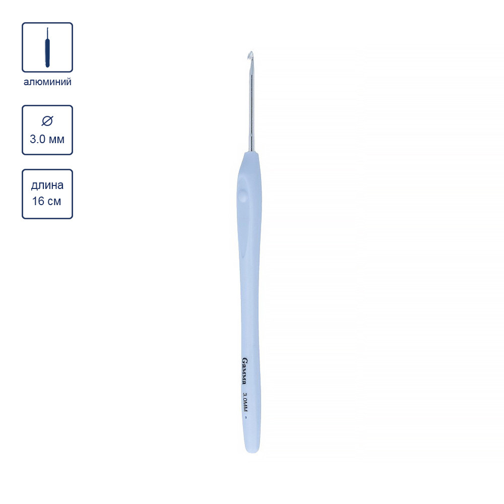 Для вязания " Gamma" RHP крючок с прорезин. ручкой алюминий d 3. 0 мм 16 см в блистере .