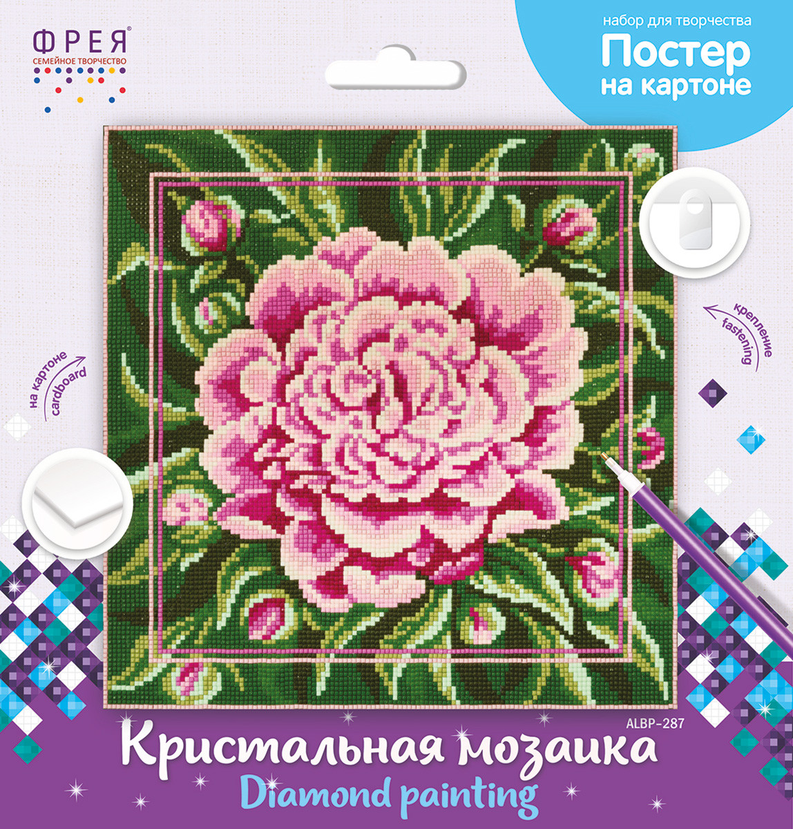 Кристальная ( алмазная) мозаика " ФРЕЯ" ALBP- 287 постер " Пион" 30 х 30 см